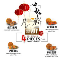 Rewardz Set B1 : 伍仁果月 Assorted Nuts Mooncake / 光辉翠月 Imperial Jade Mooncake with 1 Yolk / 双黄莲蓉 Lotus Paste Mooncake with 2 Yolks / 单白莲蓉 White Lotus Paste Mooncake with 1 Yolk